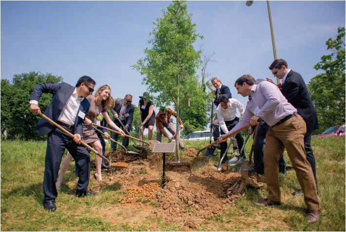 Nature Flooring of Exton, PA put its long-term environmental stewardship into action by planting trees, on May 16 at Washington, DC’s Wangari Gardens. Founded in 2012, Wangari Gardens is designed, created, and sustained by the community for the non-profit benefit of the community.